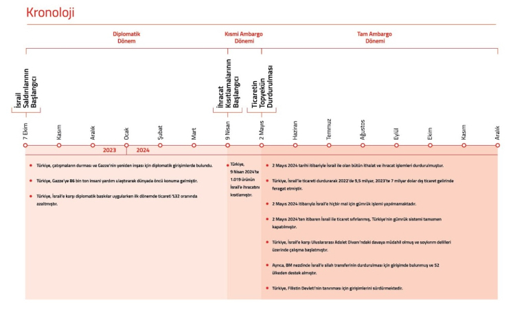 Türkiye’nin İsrail ile Ticareti Durdurma Süreci Hakkında Kapsamlı Bilgi Notu hazırlayan bakanlık,  gün gün kronolojiyi raporlaştırdı.