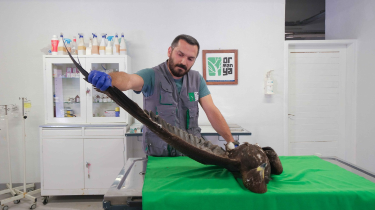 Doğa Koruma ve Milli Parklar Müdürlüğü ekipleri tarafından yürütülen kurtarma operasyonuyla güvenli bir şekilde Ormanya’ya getirilen kartalın ilk muayenesinde, kafa travması geçirdiği tespit edildi.