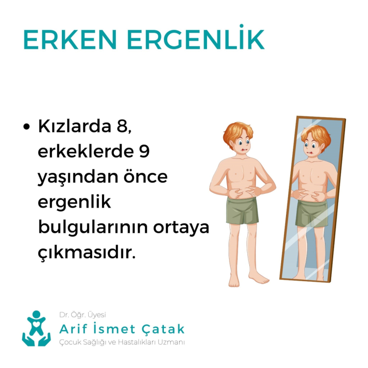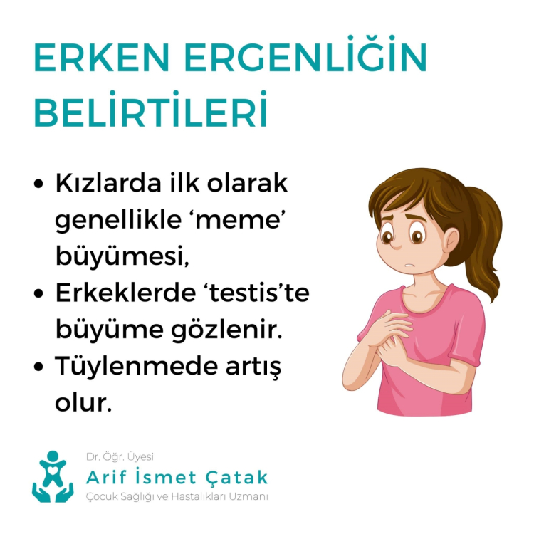 TOKAT (İGFA) -  Tokat Gaziosmanpaşa Üniversitesi Hastanesi'nden Çocuk Sağlığı ve Hastalıkları Anabilim Dalı Öğretim Üyesi Pediatrist Dr. Arif İsmet Çatak, sosyal medya hesabında yaptığı paylaşımda erken ergenlik konusunda aileleri uyarıyor. Çocuklarda ergenlik belirtilerinin beklenenden önce başlaması durumunda mutlaka uzman bir doktora başvurulması gerektiğini belirten Dr. Çatak, erken teşhis ve tedavinin çocukların sağlıklı gelişimi açısından kritik olduğunu vurguluyor.