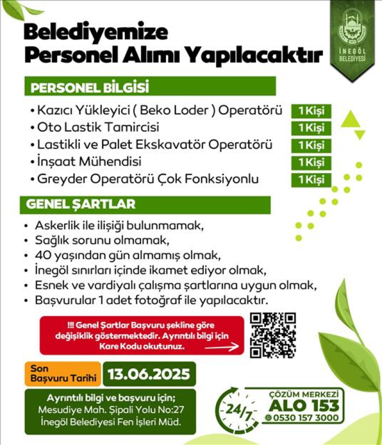 Başvurularla ilgili tüm detaylar ve ilan metni, İŞKUR tarafından yayımlanan resmi doküman https://media.iskur.gov.tr/106085/inegol-belediyesi-personel-hizm-13-06-2025.pdf bu bağlantı üzerinden incelenebilir.